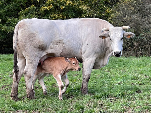Die Chianina-Rinder sind die größte Rinderrasse der Welt und stammen ursprünglich aus der italienischen Region Val di Chiana. Sie zeichnen sich durch ihr porzellanweißes Fell, einen leichten, ausdrucksvollen Kopf und kurze Hörner aus. Chianina-Rinder haben einen langen, zylindrischen Körper mit breitem Rücken und Lenden sowie kräftigen Schenkeln.